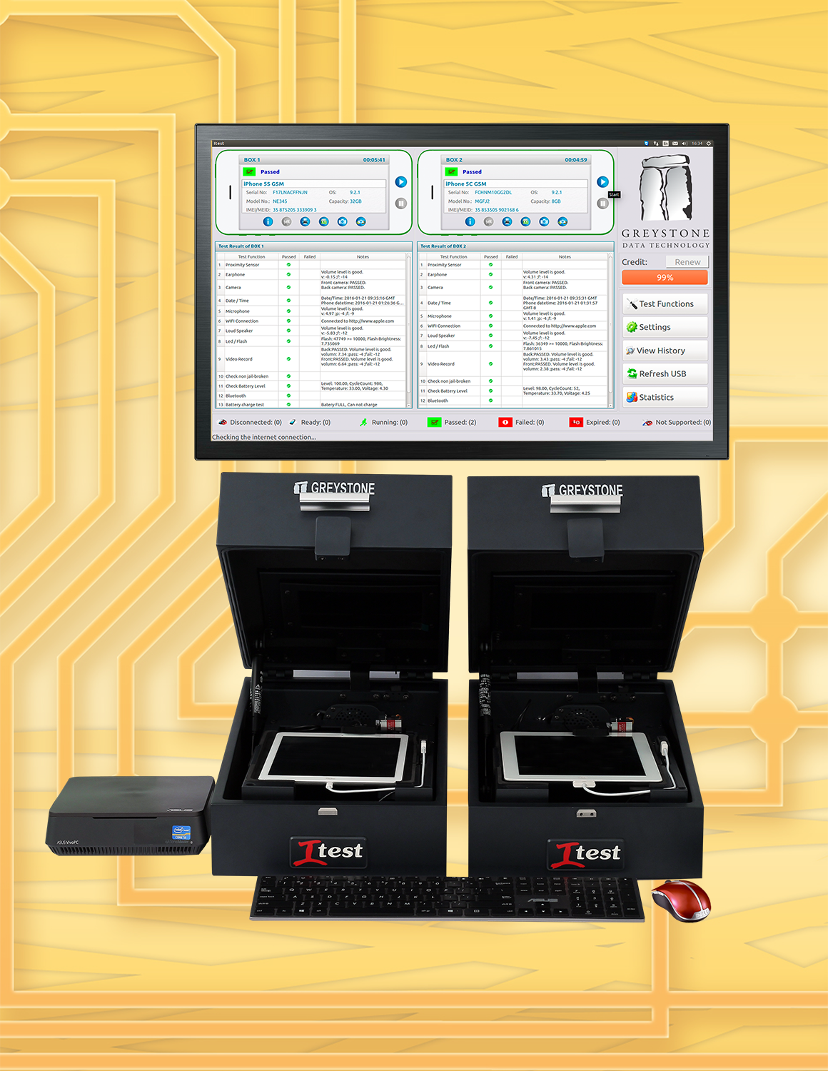 - Support to test all functions of smartphones, such as: camera, video record, LED / flash, Proximity sensor, Wifi, Call and all audio functions ... Most of the functions are automatically tested .
